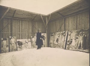 Munch’s house and studio were on a remote hillside above Oslo, where he fled after his 1908 breakdown to escape “the enemy” – critics and fellow artists. He would live there with his beloved dogs, and the occasional horse, until his death. Liberated from his angst and alcoholism, he painted and repainted the nature around him, jealously hoarding his work while treating it with mind-boggling contempt. He would leave paintings outside in in all weathers beneath a narrow mansard, saying: “It does them good to fend for themselves.”